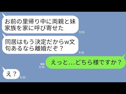 【LINE】私の里帰り出産中に義両親と義妹家族との同居を決める夫「今日から6人同居させるw嫌なら離婚な」→私「どちら様ですか?」夫「え?」→義家族が崩壊へw