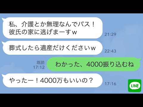 【LINE】義母が要介護になった途端に逃げた義妹「葬式したら遺産だけよろしくw」→3年後、遺産を狙って帰ってきた女を撃退www