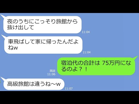 【LINE】うちの実家の高級温泉旅館に5泊して最終日に夜逃げして支払い75万をバックレたママ友「ゴチになりますw」→非常識過ぎるアフォ女に全力制裁w