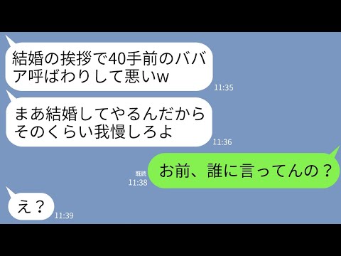 【LINE】コンビニバイトの婚約者が結婚式の挨拶でノリノリで嫁サゲ「40手前のババアに土下座でお願いされましたw」→嫌がってるのでお望み通り速攻婚約破棄した結果www