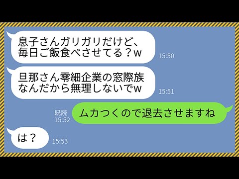 ラインで【LINE】タワマンオーナーの私の旦那を零細企業の窓際族だと勘違いして見下してきたボスママ「ご飯、毎日食べれてる?w」私「ムカつくので退去させます」ママ友「え?」→夫の正体を知ったDQNの末路がwww出てくると思わなかったわ
