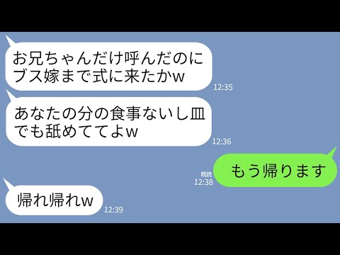 【LINE】ブラコン義妹の結婚式に招待されると私の食事だけなかった…義妹「なんで勝手に来てんの?w」夫「俺だけ悪いなw」→呆れた私が帰宅すると義妹の結婚式が大惨事にwww