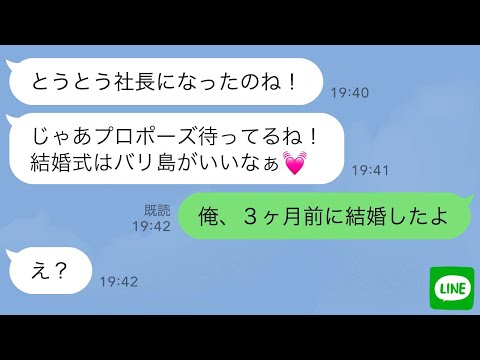 LINEで【LINE】プロポーズされるのを自分と勘違いした元カノ。まさかの結婚報告をされた瞬間、態度が豹変したwww出てくると思わなかったわ