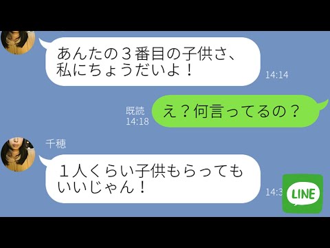 ラインで【LINE】不妊治療中の友人「あんたの子供1人よこせ!」→発狂する友人に“ある事実”を伝えると態度が豹変!その1年後…出てくると思わなかったわ