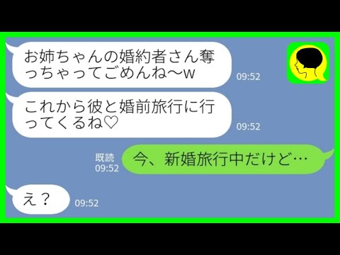 【LINE】両家顔合わせで私の婚約者に一目惚れして奪った妹から幸せ報告「これから婚前旅行に行ってくるね♡」私「今、新婚旅行中だけど…」→姉の大逆転に、妹が顔面蒼白になった結果wwwスカッとするライン動画配信中です!