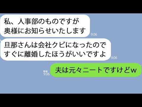 【LINE】人事「旦那さんは会社をクビになったので離婚したほうがいいですよ」私「夫は元々ニートですけど」→浮気女が顔真っ赤にw