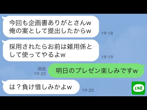 【LINE】俺の企画書を盗んだ先輩「俺の企画案として提出w」→企画データに先輩の浮気写真を仕込んでおいた結果wって動画が話題らしいぞ