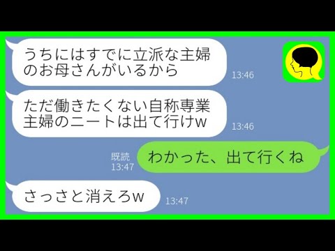 【LINE】兄嫁の私を寄生虫扱いして実家から追い出す出戻り義妹「専業主婦のニートは出て行け」→言われた通り出ていくと、翌日「戻ってきて!」と泣きつく義妹がwwwスカッとするライン動画配信中です!