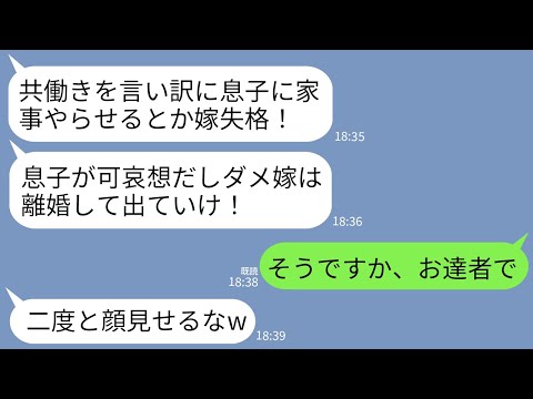【LINE】共働きに理解を示さず夫に家事をさせただけでブチ切れて離婚させる姑「旦那様にご飯作らせるなんて嫁失格!」→お望み通りに離婚したら義母が大後悔することにwww
