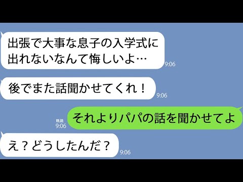 【LINE】出張で息子の入学式を欠席した夫を街中で発見…息子「なんかおかしくない?」→隣に女性がいたので泳がせてみると…