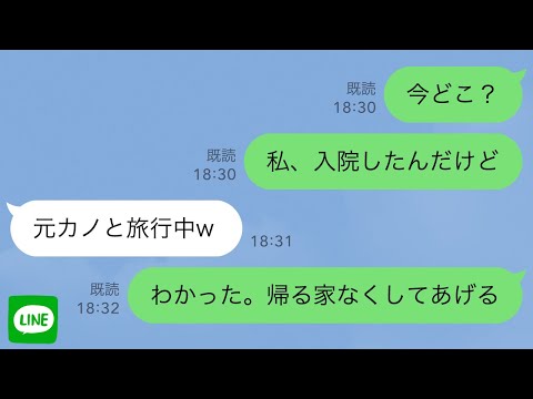 【LINE】出産前で入院中の私に旦那「元カノと旅行してくる」→後日、旦那の様子が…【修羅場】って動画が話題らしいぞ