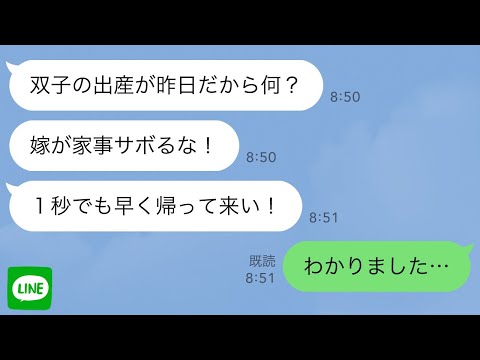 【LINE】双子を出産した翌朝に姑「嫁が休むな!1秒でも早く帰って来い!」→親戚全員を連れてお望み通り帰宅してやった結果www【スカッとライン修羅場】って動画が話題らしいぞ