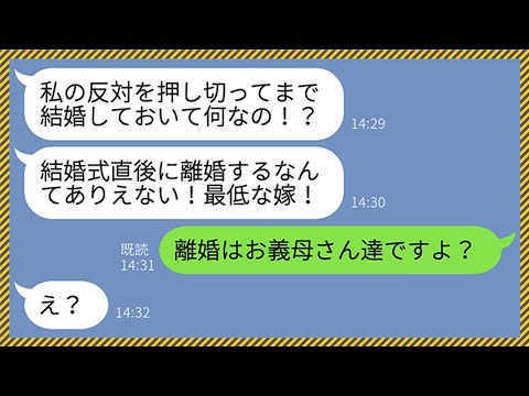 【LINE】同居中の義母が突然大激怒「結婚式直後に息子と離婚するなんて最低ね!」私「離婚はお義母さんですよ?」勘違い姑「は?」→自分が置かれている状況を理解したクズ女の末路がwww【スカッとする話】 動画にスカッ!として頂いた方は高評価、コメントを宜しくお願いします^^