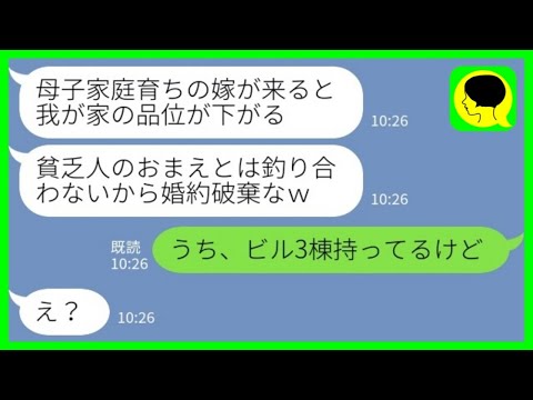 LINEで【LINE】大地主の婚約者の実家に結婚の挨拶に行った翌日に婚約破棄を告げられた「母子家庭出身の貧乏人はNGだってw」→その後、”ある真実”を知った元婚約者が大慌てで復縁を迫ってきたが…出てくると思わなかったわ