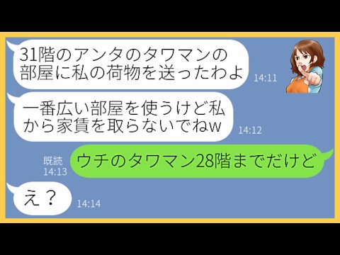 【LINE】大量の段ボールを送りつけタダで私のタワマンの部屋に住み込むつもりのシンママ「一番広い部屋を使うわねw」→非常識すぎるクズ女にある事実を伝えると顔面蒼白に…【スカッとする話】