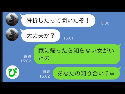 【LINE】夫「骨折したって聞いたぞ!大丈夫か?」私「家に知らない女がいたの」夫「は?」→その後、病院が地獄絵図に…【スカッと修羅場】って動画が話題らしいぞ