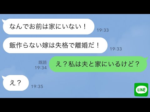 【LINE】夫から突然のブチギレLINE「なんでお前は家に居ない!飯作らないなら嫁失格で離婚だ!」私「え?私は夫と家にいるけど?」夫「え?」実は…
