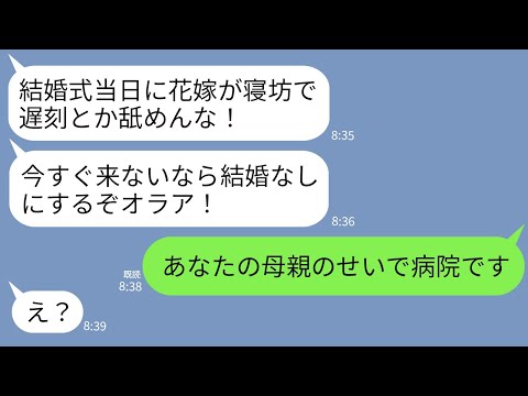 【LINE】夫から突然怒りの連絡「結婚式を花嫁が遅刻⁉︎今すぐ来なきゃ式中止!」私「あなたの母親のせいで病院です」→衝撃の真実を知った夫がガタガタ震え出し…って動画が話題らしいぞ