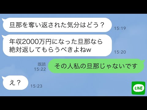 【あらすじ】転職先で夫の元嫁と同期入社になった私。気にせず業務に励むが、元嫁のほうが何かと私に突っかかってきて、ある日「旦那とヨリを戻すことにした」と略奪連絡された。でもその話に食い違いと勘違いがあると気づき、旦那に元嫁のLINEを見せてみたら…w