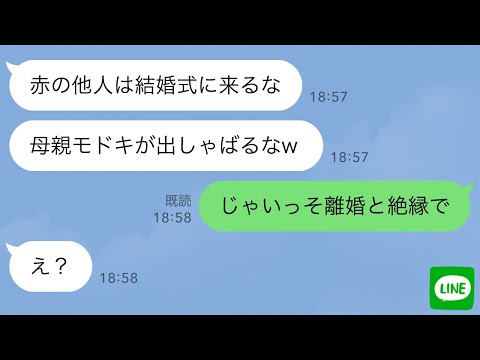 ラインで【LINE】夫の浮気で産まれた娘が結婚。娘「赤の他人は挙式に来るな」夫「家族ごっこは楽しかっただろw」私「じゃ離婚と絶縁でw」夫と娘「え?」→実は私…出てくると思わなかったわ