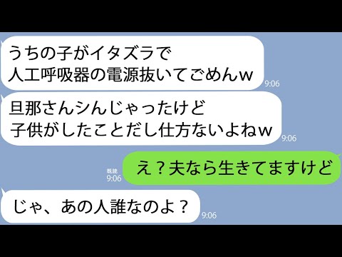 【LINE】夫の病室で人工呼吸器の電源を抜いたママ友「子供のイタズラでシなせてごめんw」私「主人なら生きてますよ?」→次の瞬間、ママ友は発狂し…