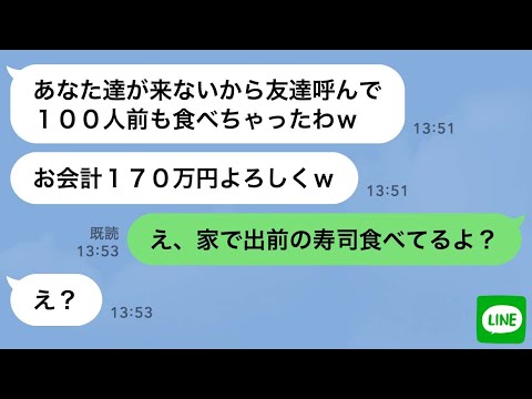 【LINE】奢られる前提で高級寿司100人前を食い散らかす泥ママ「人の金で食う大トロ最高w」→満腹になったママ友に“衝撃の事実”を伝えた時の反応がwww