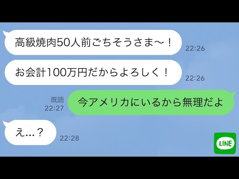 【LINE】奢られる前提で高級焼肉50人前を食い散らかすママ友「人の金で食う肉は美味いw会計よろしく!」→「え?私今アメリカだけど」