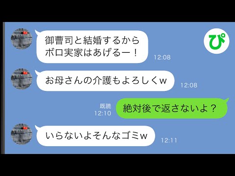 【LINE】妹「御曹司と結構するからボロ実家はあげるw」母も邪魔なので縁を切るという妹→実家とまとめて私が引き受けた結果…【スカッと修羅場】って動画が話題らしいぞ