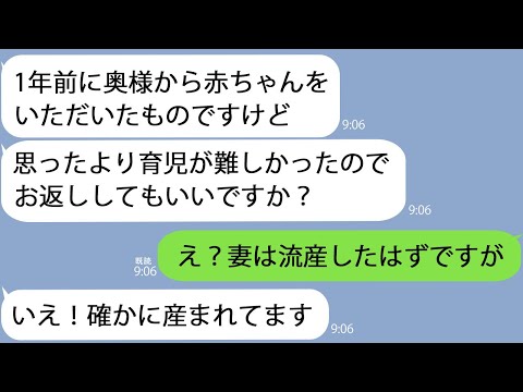 【LINE】妻が1年前に流産したはずなのに…知らない女「赤ちゃんお返ししたいんですけど」→意味がわからないので妻に連絡すると…