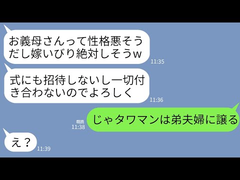 【LINE】姑の私を一方的に嫌って結婚式にも招待せず住所も教えない兄嫁「絶対嫁いびりする顔してるしw」→私がタワマン住みと知った途端の手のひら返しがすごいwww