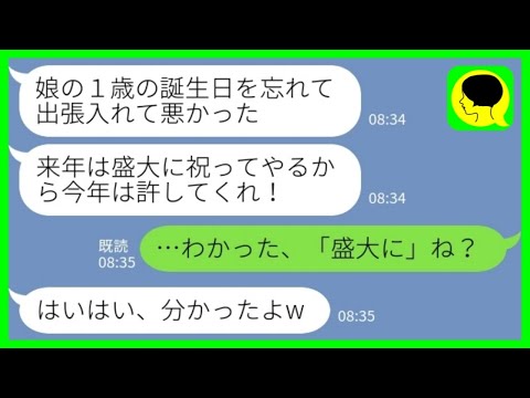 【LINE】娘の1歳の誕生日を忘れて浮気旅行に出かけた夫「ごめんな!来年は盛大に祝おう!」私「そうだね、楽しみ!」→1年後、静かに地獄に落とした結果www スカッとするライン動画配信中です!