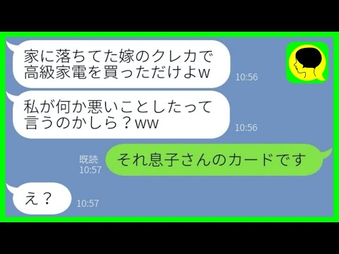 【LINE】嫁のクレカと財布を奪って高級家電を買い漁った姑「200万使ったわw」→迷惑義母に〇〇を伝えた時の反応が…wって動画が話題らしいぞ