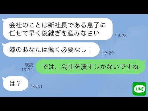 【LINE】嫁の私が義父の会社を継いだと知らず離婚を迫る姑「孫を産まない嫁はいらないw」私「では会社を潰しますねw」→1週間後、義母が大慌てで連絡してきた理由がwwwって動画が話題らしいぞ