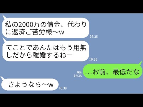 【LINE】嫁の2000万の借金を10年かけて返済した俺。完済報告すると嫁「ご苦労さんwじゃあ離婚で」→お望み通りに離婚した後である事実を伝えた時の反応がwww