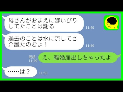 【LINE】嫁を一方的に嫌って嫌がらせをしていた義母が要介護になると夫「過去のことは水に流して介護よろしくな!」私「え、離婚届出しちゃったw」→嫁をあてにしていた夫、地獄の介護生活へ…