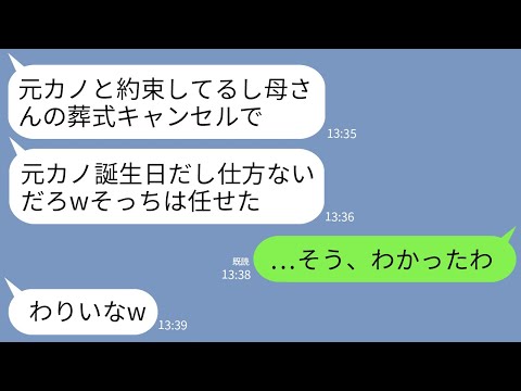 【LINE】実の母親の葬式より元カノの誕生日を優先して祝う夫「前から約束してたからwそっちはお前に任せた」→3時間後、悪びれず帰宅した夫が全てを失うことにwww