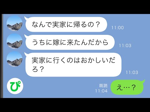 【LINE】実家に帰らせてくれない夫「うちに嫁に来たんだから行く必要ないだろ?」→子供が産まれても帰らせてもらえなかった私は…【スカッと修羅場】って動画が話題らしいぞ