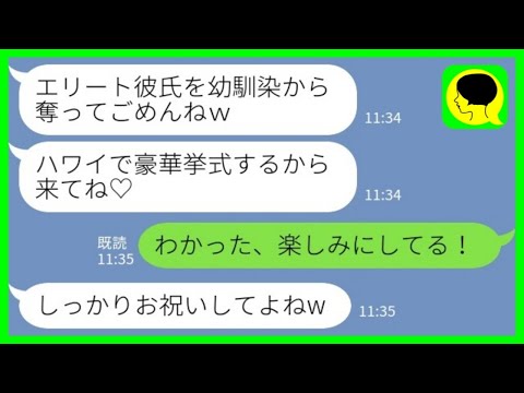 【LINE】帰国子女のエリート彼氏を奪った幼馴染から結婚式の招待状「ハワイで豪華挙式するから来てね♡」→結果wwwって動画が話題らしいぞ