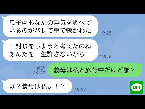 【LINE】復讐を決めた姑「お前が息子を車で轢いたんだ…一生許さない!」→しかし義母は私と旅行中なので急いで帰宅してみた結果、驚愕の展開に…【スカッとする話】【修羅場】