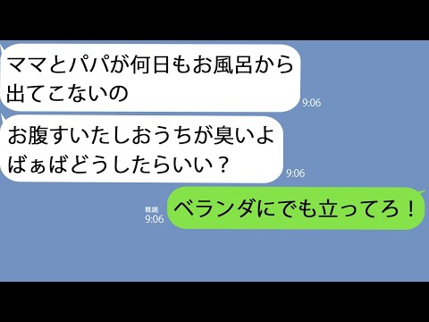 【LINE】息子宅に寄ると4歳の孫が異臭を放って出てきた「ママもパパもお風呂から出てこないの」→汚い家の中を見て回ると恐ろしいことになっていた…って動画が話題らしいぞ