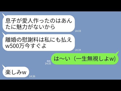 ラインで【LINE】愛人が3人もいた夫と離婚すると元義母から慰謝料要求が…元義母「私にも慰謝料500万ねw迷惑かけたし当然」→私「わかりました!」→そのまま永久に無視した結果www出てくると思わなかったわ