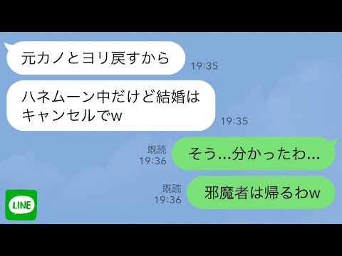 【LINE】新婚旅行先で幼馴染を優先する夫「彼女とヨリ戻すわw」→勝手に帰国すると夫から200件の鬼電が…w【スカッとライン修羅場】って動画が話題らしいぞ
