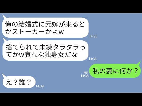 【LINE】新婦側招待の結婚式に参列すると新郎が元夫だった…。元夫「俺に未練タラタラでストーカーかw独身女哀れだな」→現夫「私の妻に何か?」→元夫が全てを失うことにwww