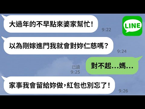 【LINE】新手媳婦過年成傭人!要求家務包辦加上「30萬大紅包」→被惡婆婆欺負的可憐媳婦準備「新年大禮」孝敬夫家長輩
