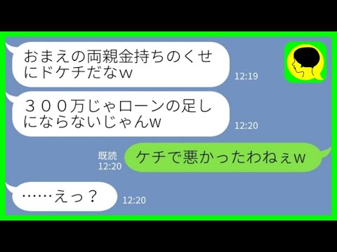 【LINE】新築一軒家の建築費用を援助してくれた私の両親の悪口を言う夫「金持ちのくせに援助これだけ?ドケチだなw」母「ケチで悪かったわねw」→裕福な嫁実家に甘えっぱなしの夫の末路がwwwスカッとするライン動画配信中です!