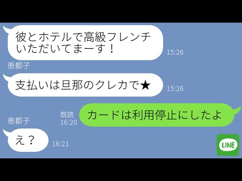 クレジットカードを無くしたと思ったら、嫁が浮気旅行のために持ち出していたことが、誤爆ラインで判明。さっさと利用停止にしたら、浮気嫁が「カードが使えない」と泣きついてきたので、LINEの誤送信で全部バレていることを伝えた時の反応が…w