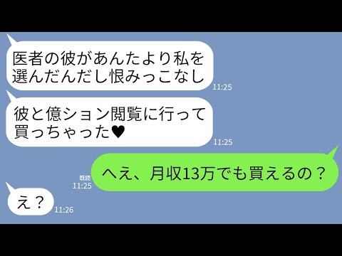 【LINE】月収12万のフリーターの私の婚約者を医者と勘違いして奪った親友からマウント連絡「彼が億ション買ってくれたよw」→勝ち誇る女に真実を伝えた時の反応がwwwって動画が話題らしいぞ