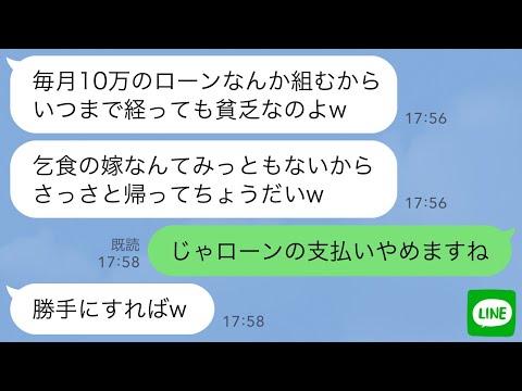 【LINE】毎月義実家のローン10万を払う私に感謝せず親戚の集まりで貧乏人と罵る姑「乞食の嫁はさっさと帰れw」→呆れた私がローンの支払いをやめてやった結果www