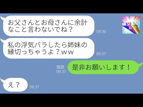 【LINE】気弱な姉を見下し旦那を奪った妹「両親にバラしたら絶縁よ?w」私「是非!」妹「え?」→好き放題する妹が全てを失う瞬間が…w