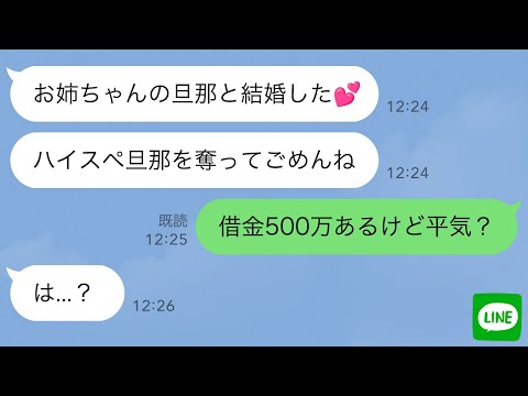 【あらすじ】疎遠になっていた妹から、私の旦那と浮気したとの暴露があった。それに対し冷静なツッコミを入れたものの、妹にとっては煽られたように感じたのか数日後には入籍宣言。けれどそのタイミングでまさかの事実に気づいたらしく、大慌ての連絡が来て…w